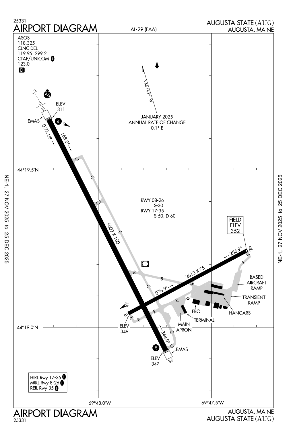 ICAO - KAUG, IATA - AUG, FAA ID - AUG